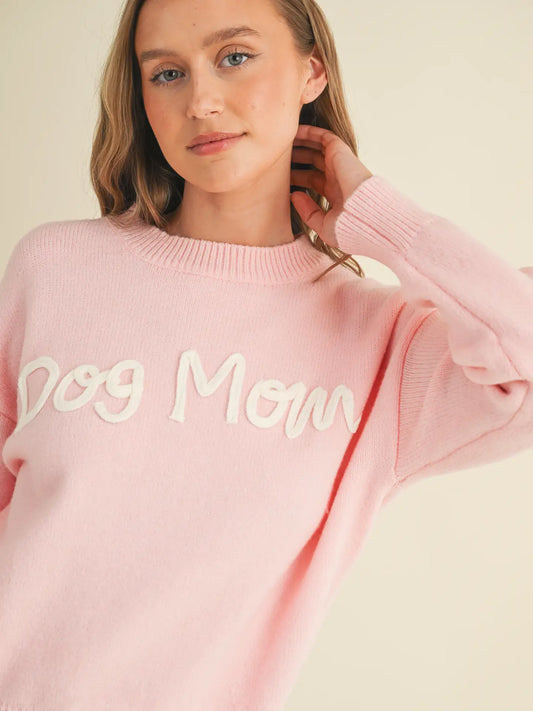 Hand Embroidered "DOG MOM" Sweater