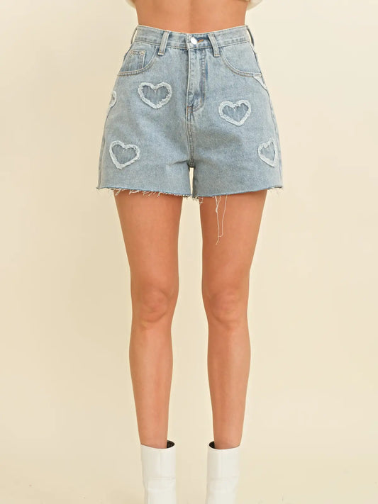 Mid Rise Distressed Rolled Hem Denim Shorts