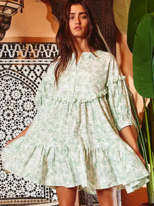 Elizabeth Blooming Floral 7/8 Sleeve Dress