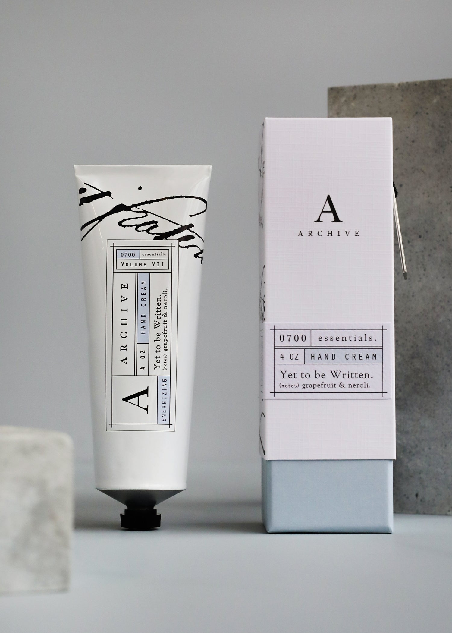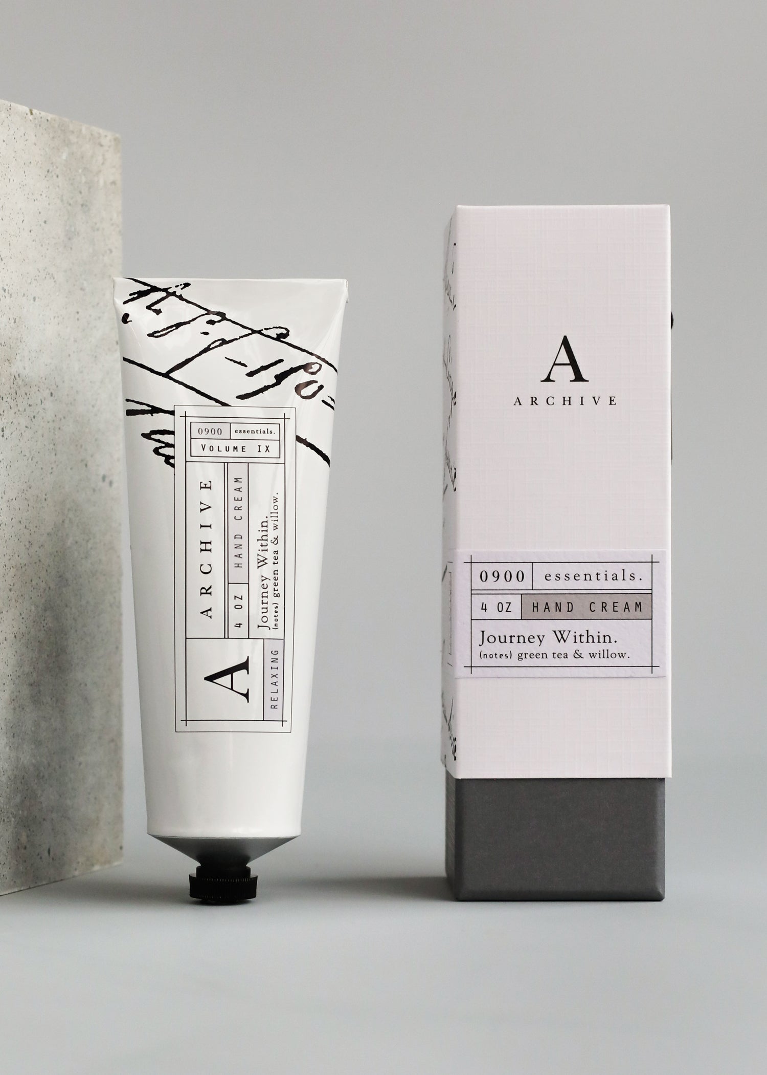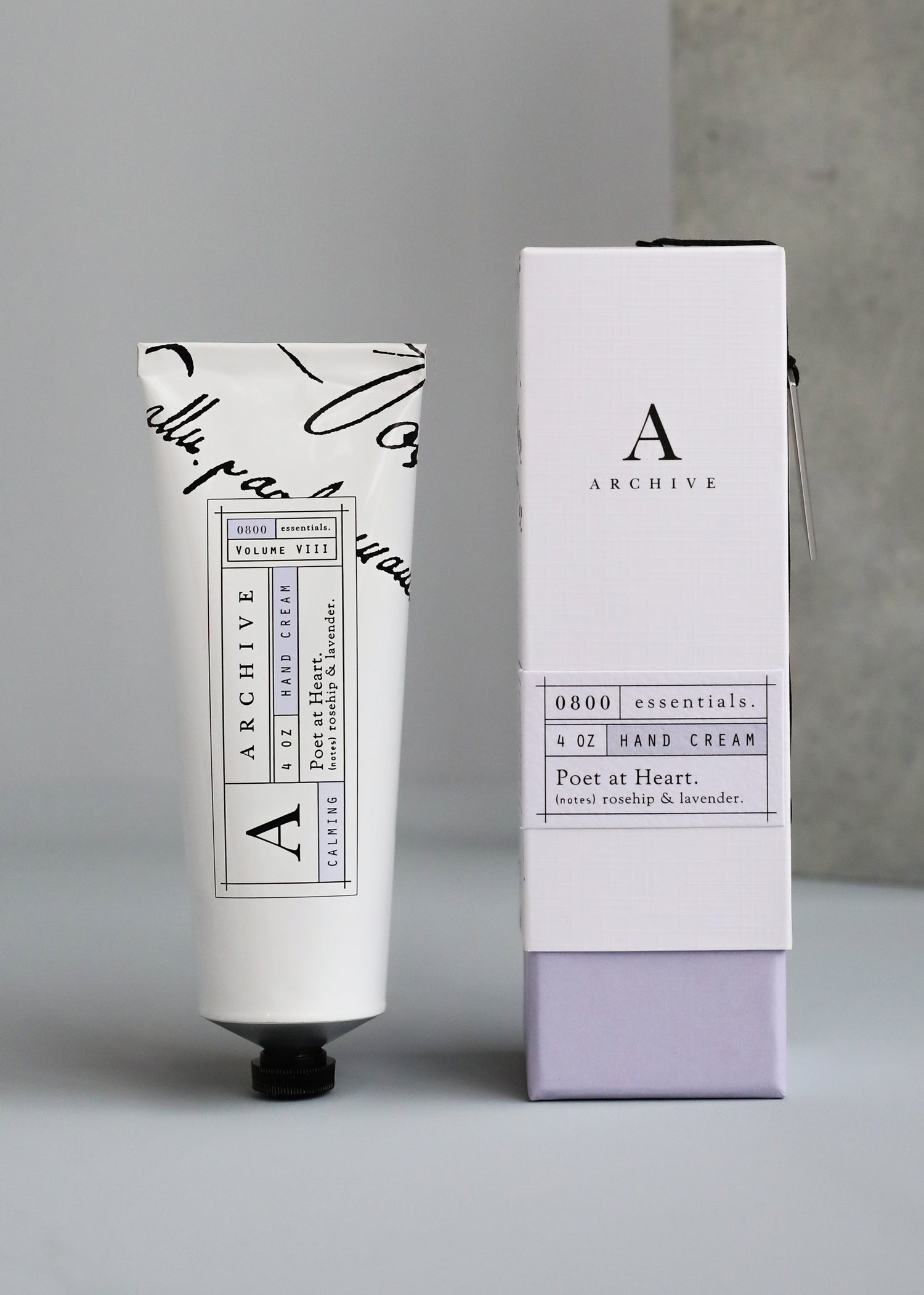 Exquisitely adorned with an embossed metal charm hand-tied with a waxed black cord, this ready-to-gift keepsake box slides open to reveal a kiss of calming color. Inside, our aluminum hand cream tube is printed with vintage script.