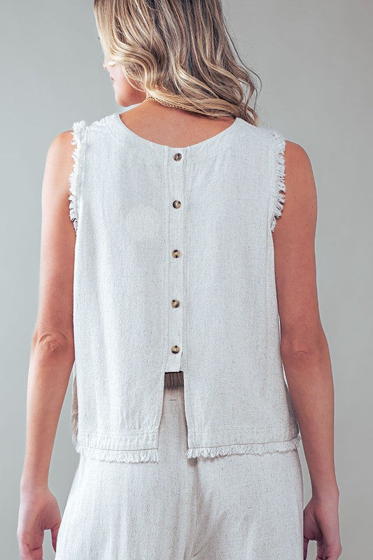Frayed Trim Back Button Top