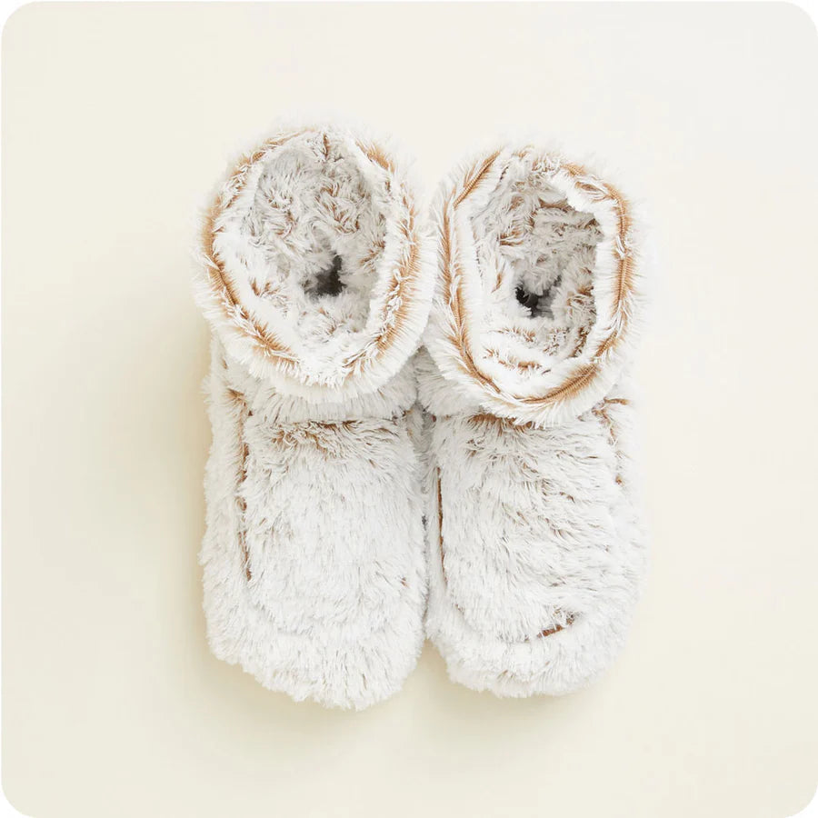 Warmies® Boots are fully microwavable and gently scented with real French lavender for the ultimate comfort and relaxation. Made with luxurious faux fur, these soft, stretchy slippers are one-size-fits-most, perfect for relieving stress and soothing tired, aching feet. Simply pop them in the microwave to provide up to an hour of soothing warmth and comfort. One Size: Fits Women's Shoe Sizes 6-10 U.S.